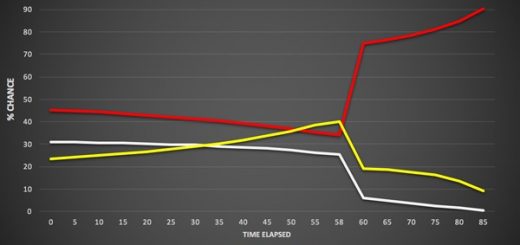 Эксперт Pinnacle считает, что эти параметры модели представляют реалистичное поведение букмекера. Мы знаем, что букмекеры применяют ограничения ставок, влияние которых более значительно на ранних этапах развития рынка, когда общий объем ставок меньше. Кроме того, при запуске рынка также есть смысл в установлении теоретической исходной ставки. Без этого ранние цены будут колебаться, сильно отклоняясь от «настоящих».